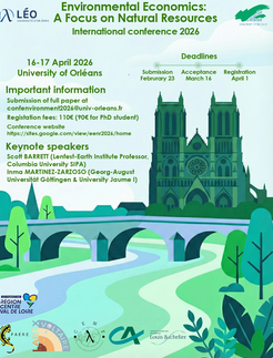 Organisé par le LÉO EENR2026 est une conférence internationale en économie de l’environnement et des ressources naturelles. L’événement vise à réunir chercheur·es du monde entier pour discuter des avancées scientifiques, échanger sur leurs travaux et débattre des enjeux contemporains liés aux ressources naturelles, à l’environnement et aux politiques publiques. Information