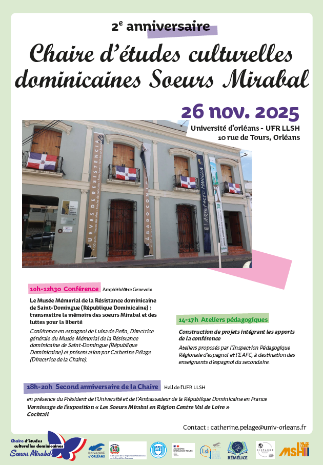 “Le Musée Mémorial de la Résistance dominicaine de Saint-Domingue  (République Dominicaine) : transmettre la mémoire des soeurs Mirabal et des luttes pour la liberté” : conférence en espagnol de Luisa de Peña, Directrice générale du Musée Mémorial de la Résistance dominicaine de Saint-Domingue (République Dominicaine) et présentation par Catherine Pélage (Directrice de la Chaire).