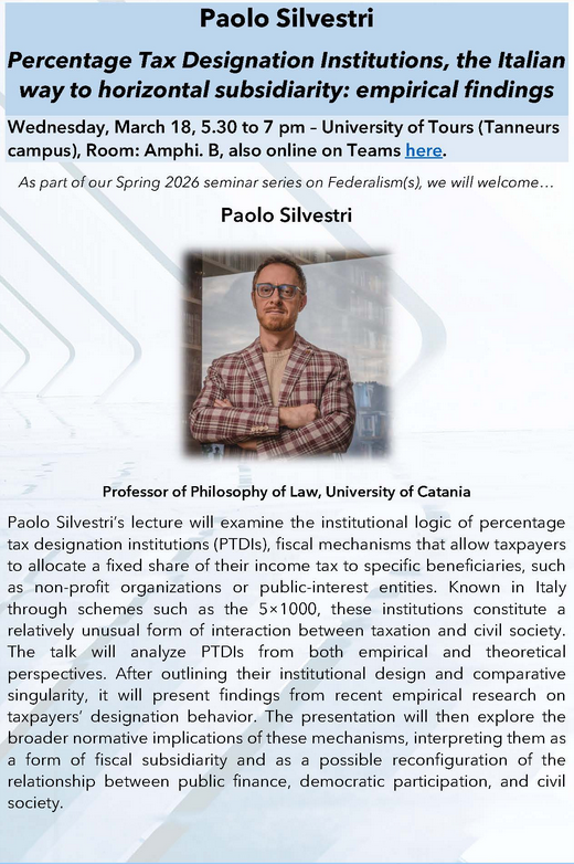 [Conférence] “Percentage Tax Designation Institutions, the Italian way to horizontal subsidiarity: empirical findings”