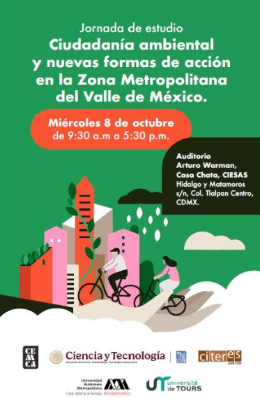 Esta jornada de estudio busca reflexionar sobre las nuevas formas de acción ciudadana para la defensa del medio ambiente que han surgido en la Zona Metropolitana del Valle de México (ZMVM) y sus aportes para diversas problemáticas ambientales (agua, transporte, residuos sólidos, agricultura agroecológica, etc.).
