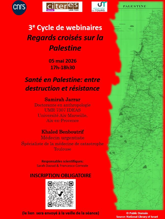 L’équipe EMAM du laboratoire CITERES lance, une série de webinaires “Regards croisés sur la Palestine”.