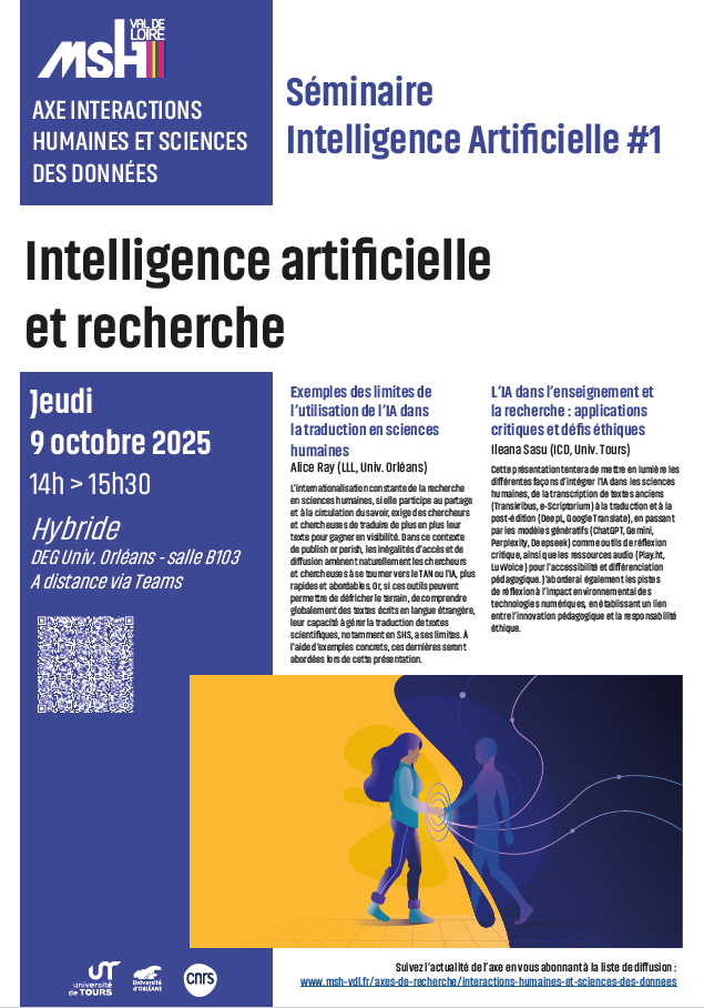 - L’IA dans l’enseignement et la recherche : applications critiques et défis éthiques – Ileana Sasu (ICD, Univ. Tours)