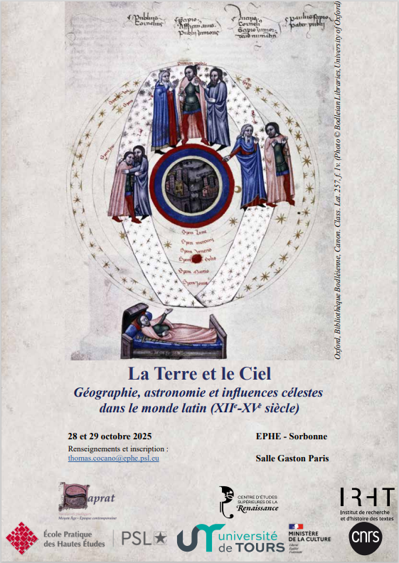 Continuer la lecture de « [Colloque] La Terre et le Ciel : Géographie, astronomie et influences célestes dans le monde latin (XIIe-XVe siècle) »