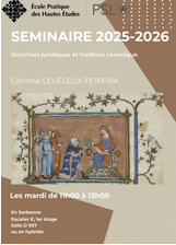 Organisées par Corinne Leveleux-Teixeira dans le cadre d’une direction d’étude à l’EPHE Séance 11 / Séminaire jeune recherche : Hugo Regazzi, Cassandre Crespin, Valentin Potier. Informations