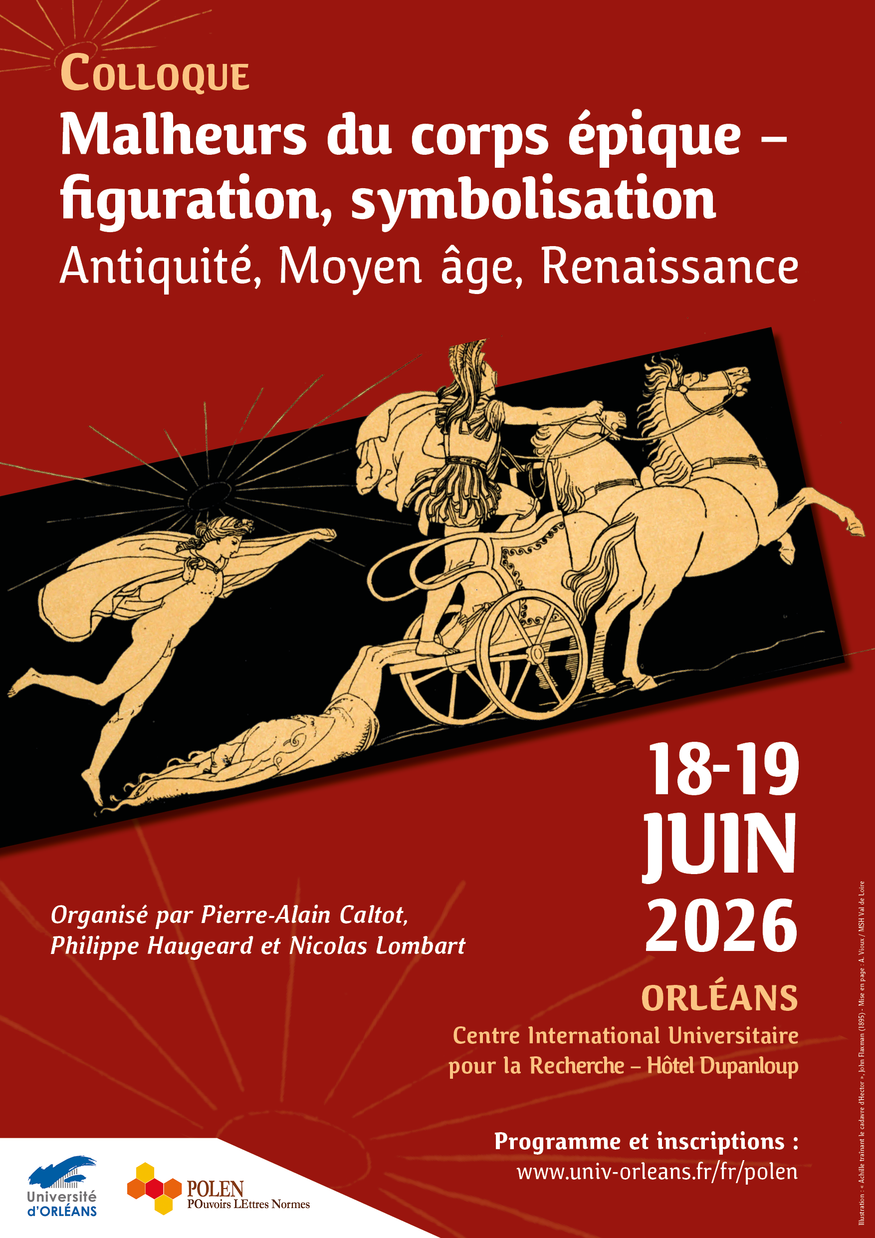 Colloque organisé par Pierre-Alain Caltot, Philippe Haugeard et Nicolas Lombart et soutenu par le laboratoire POLEN. Portant sur des sources littéraires, le colloque entend étudier ou interroger les représentations du corps épique mis à mal, de l’Antiquité à la Renaissance. Les communications pourront s’inscrire dans telle période exclusivement ou assumer une démarche plus diachronique, en …
