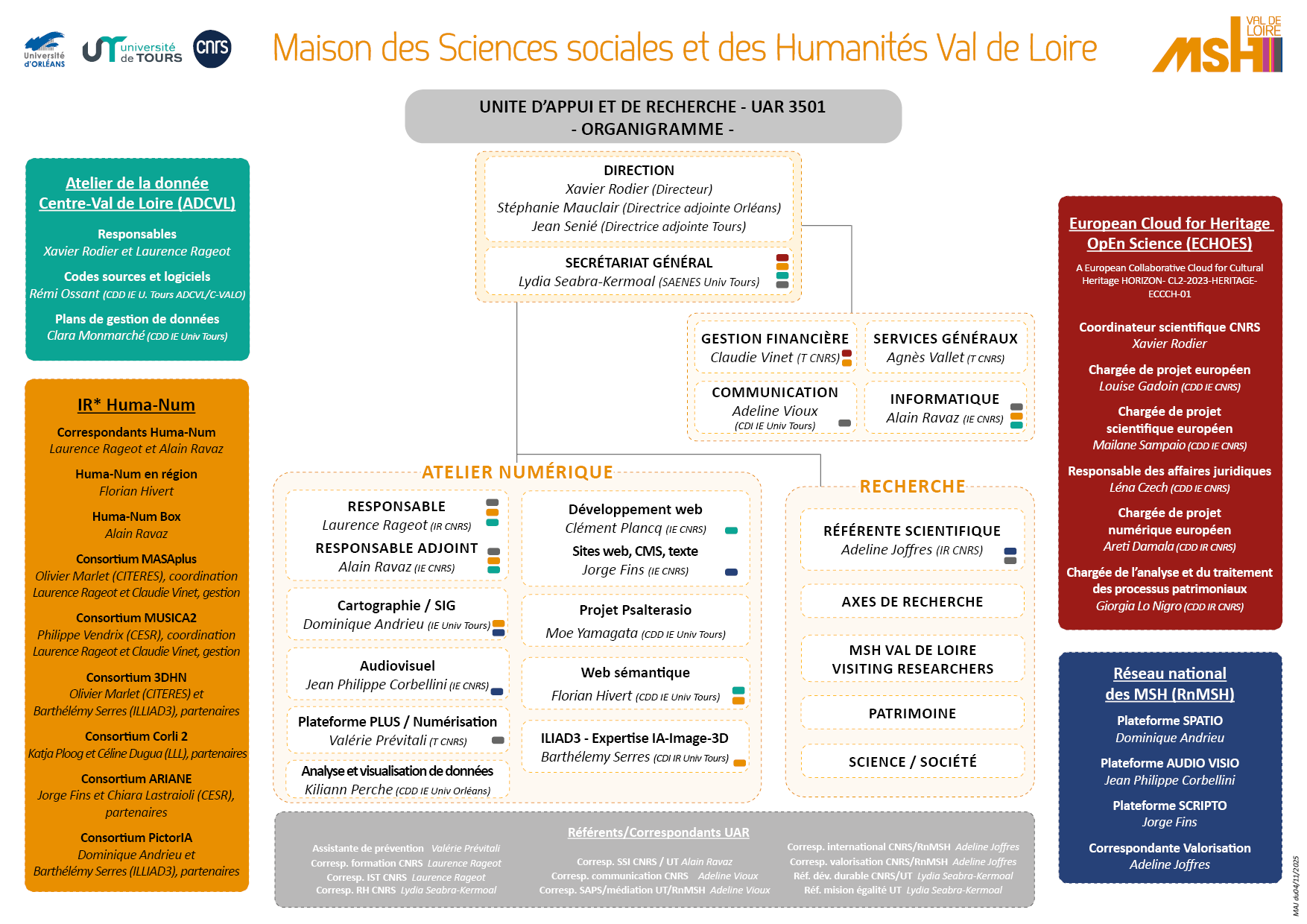 - Direction MSH Xavier RODIER, Directeur, Stéphanie MAUCLAIR et Jean SENIE, Directrice et directeur adjoints