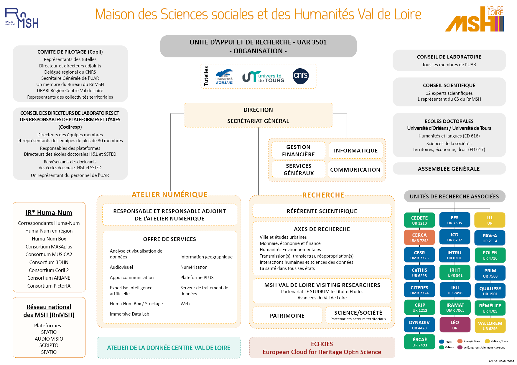 La Maison des Sciences sociales et des Humanités Val de Loire (MSH VdL) s’organise autour de trois grandes instances :