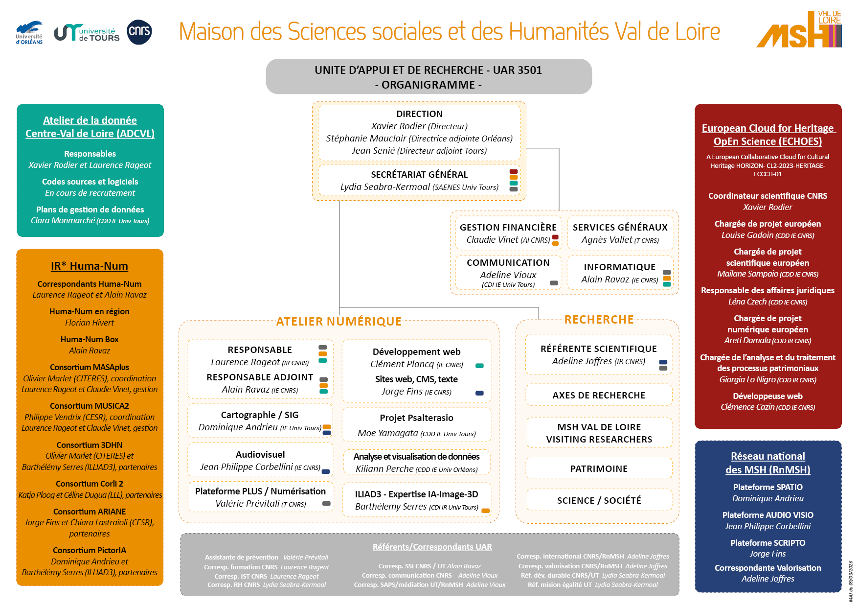 - Direction MSH Xavier RODIER, Directeur, Stéphanie MAUCLAIR, Directrice adjointe, Jean SENIE, Directeur adjoint