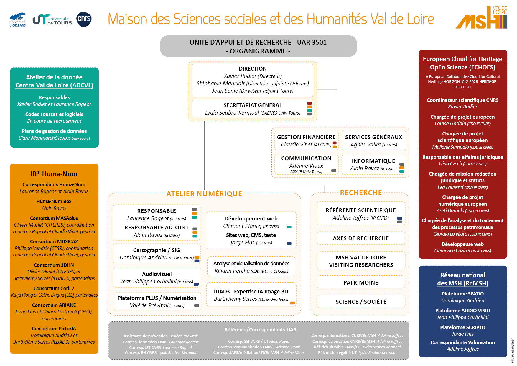 • Direction MSH Xavier RODIER, Directeur, Stéphanie MAUCLAIR, Directrice adjointe, Jean SENIE, Directeur adjoint