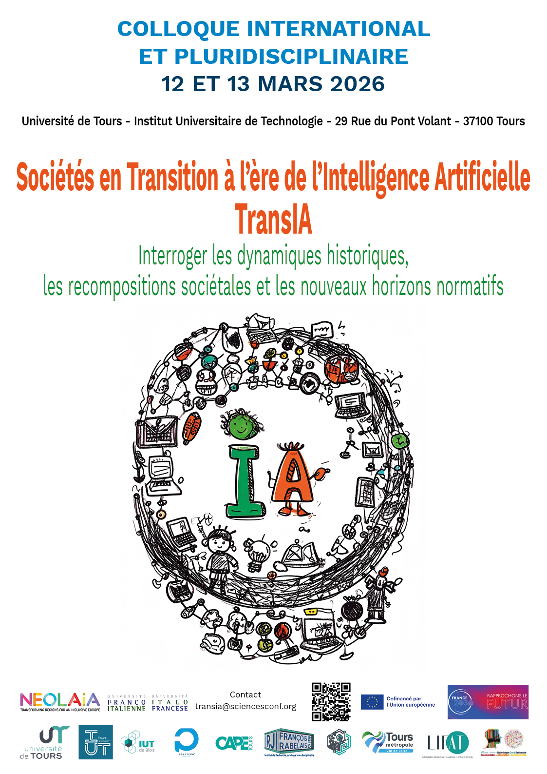 Continuer la lecture de « [Colloque] Sociétés en transition à l’ère de l’intelligence artificielle : Interroger les dynamiques historiques, les recompositions sociétales et les nouveaux horizons normatifs (TransIA) »