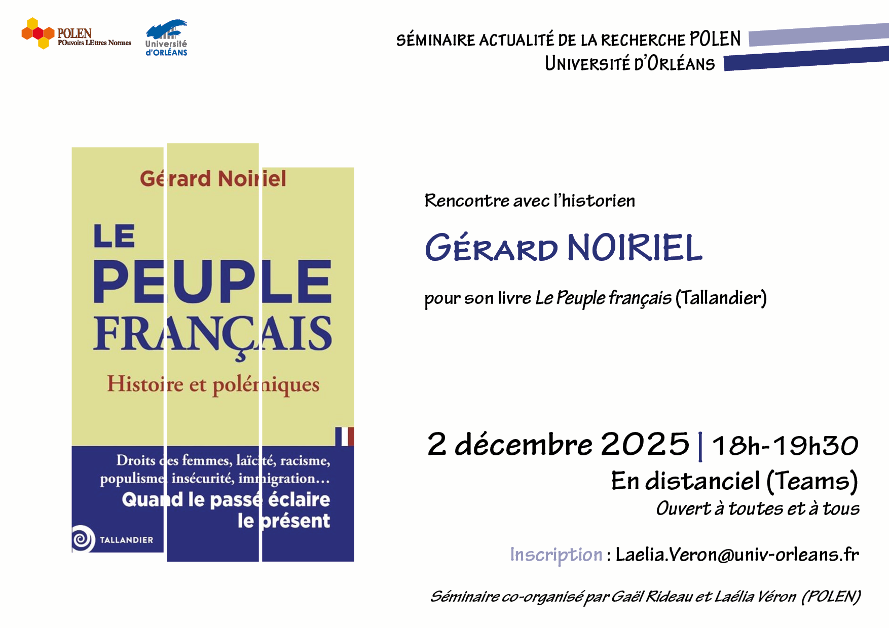 Continuer la lecture de « [Séminaire POLEN] Rencontre avec l’historien Gérard NOIRIEL pour son livre “Le Peuple français” »